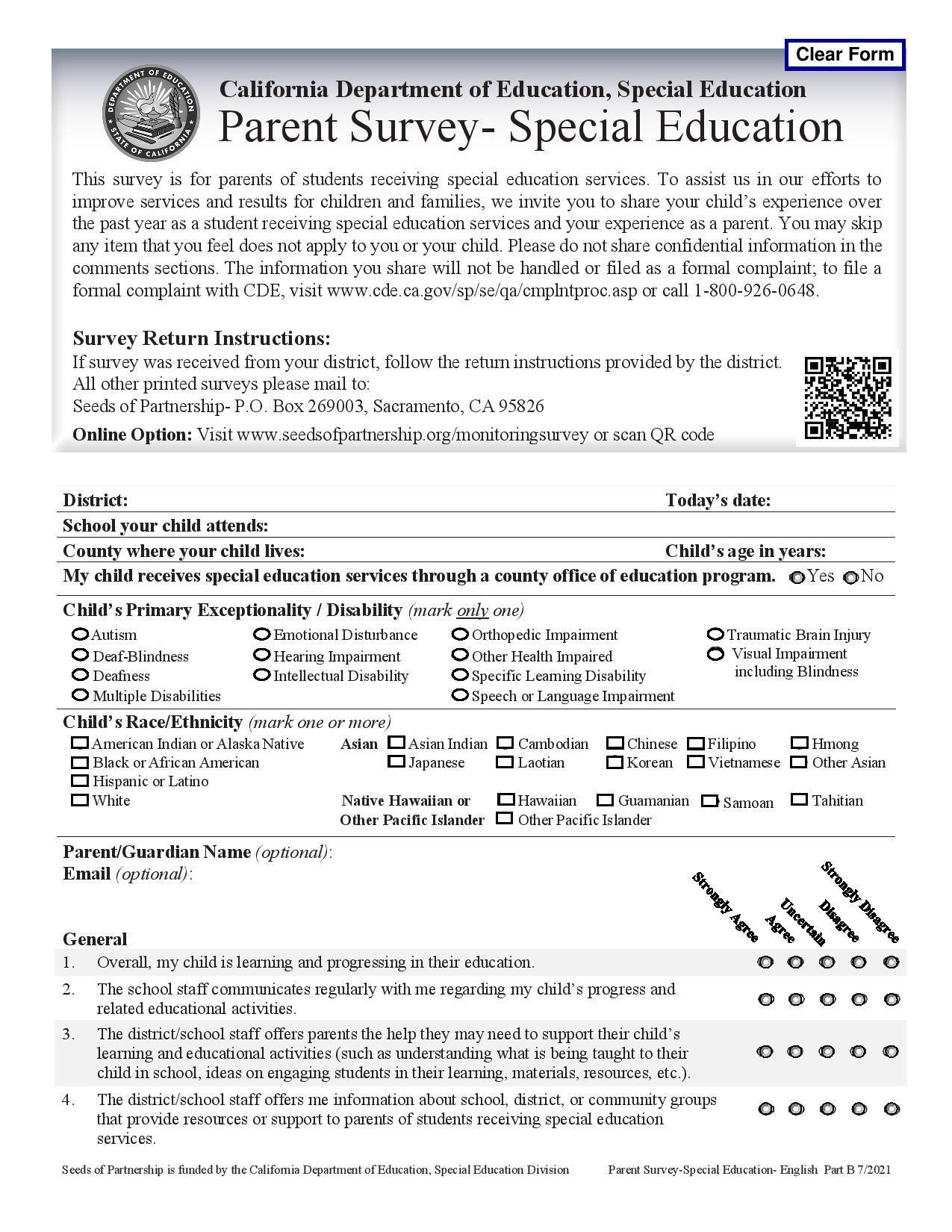 Special Education families, make your voice heard! The California Department of Education is conducting a survey of all Special Education Families in California. You are invited to share your child’s experience over the past year as a student receiving special education services and your experience as a parent.